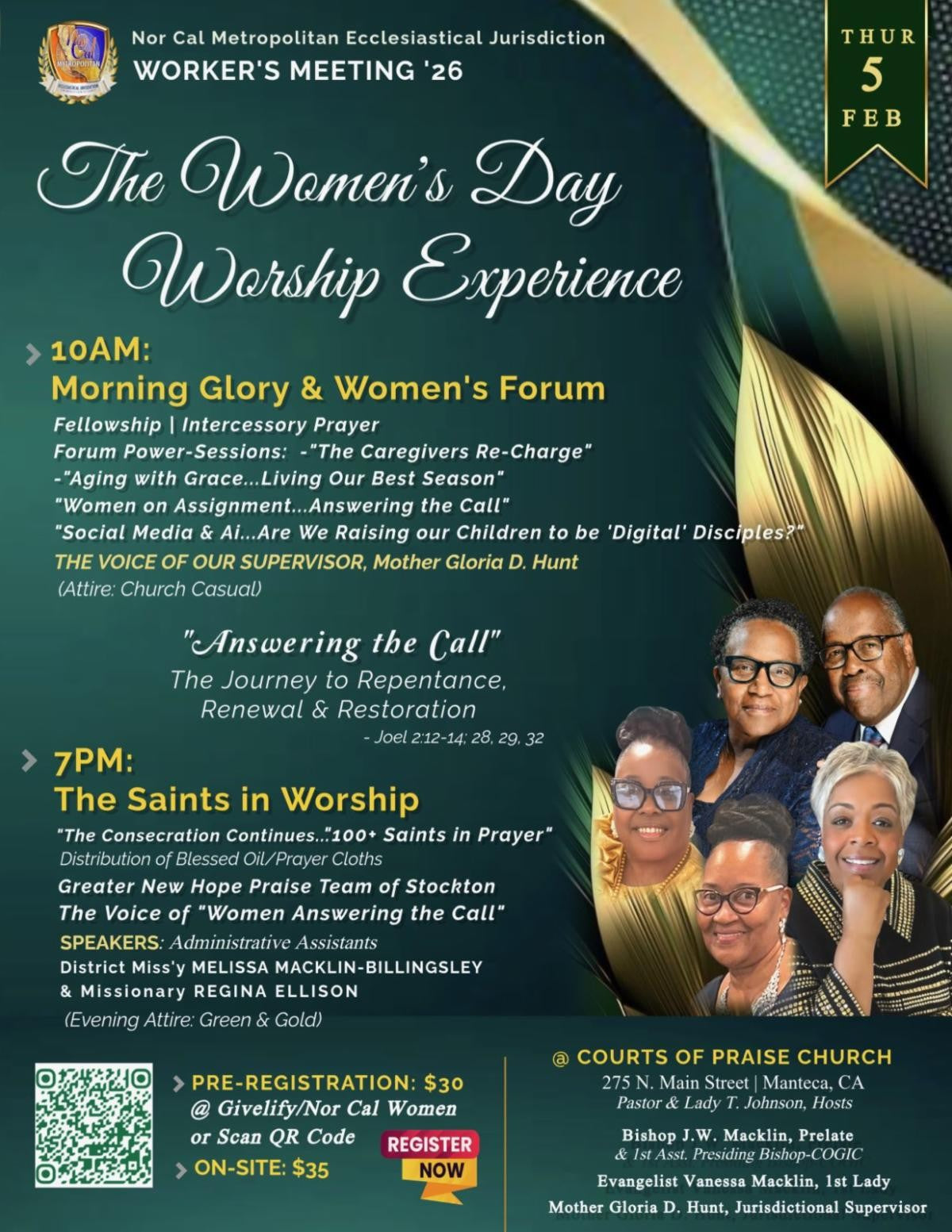 Join us for Women's Day for our 2026 Worker's Meeting. Wear your shades of green and gold.